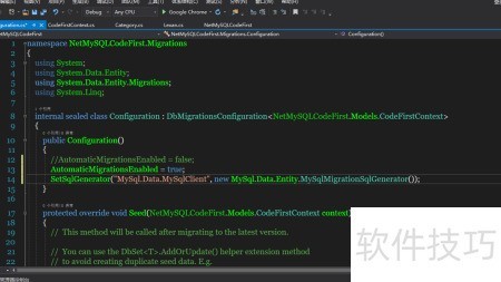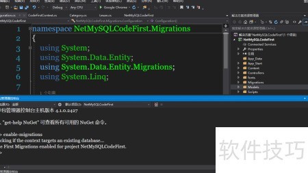 9、 执行enable-migrations命令后,系统会自动在项目中创建Migrations文件夹。随后需进入该文件夹,找到Configuration类并修改其构造函数,在其中添加指定代码,具体操作所示。此步骤是配置迁移功能的关键环节,确保后续数据库变更能正确追踪与更新,为数据持久化管理奠定基础。