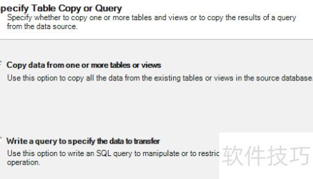 8、 点击下一步后,选择将数据从接入源传输到一个或多个表,可直接复制到SQL,或通过编写查询来指定需传输的具体数据内容。