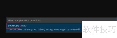 9、 在调试面板中,从下拉菜单选择,点击左侧的运行按钮。随后弹出窗口提示时,选择dotnet.exe程序文件即可继续执行调试操作。