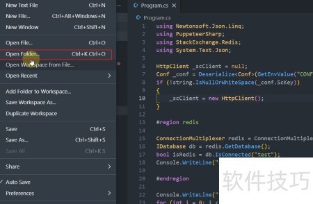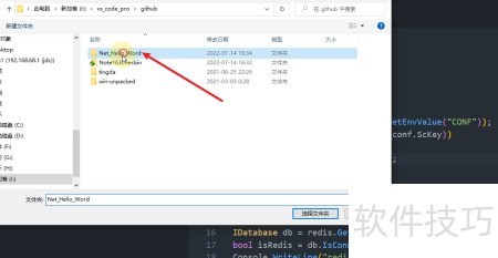7、 用VS Code打开第6步创建的文件夹,操作所示。