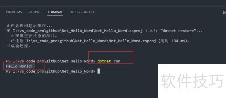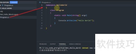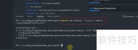 9、 在终端中执行命令:dotnet new console --framework net6.0,即可生成一个基于.NET 6.0的控制台应用程序,该程序运行后会在窗口中输出Hello World字样,适用于快速创建基础项目结构。