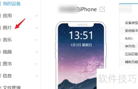 1、 连接苹果手机与电脑,启动iTools,选择左侧照片功能即可操作。