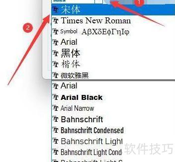 4、 点击字体选择按钮,在弹出的选项中选取所需字体,例如选择宋体。