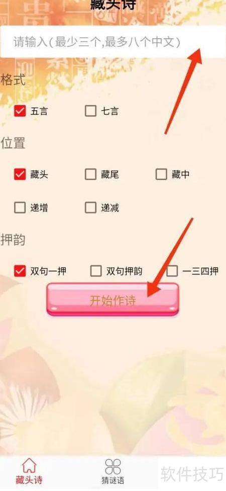 2、 输入三至八字中文,开启藏头诗创作之旅。