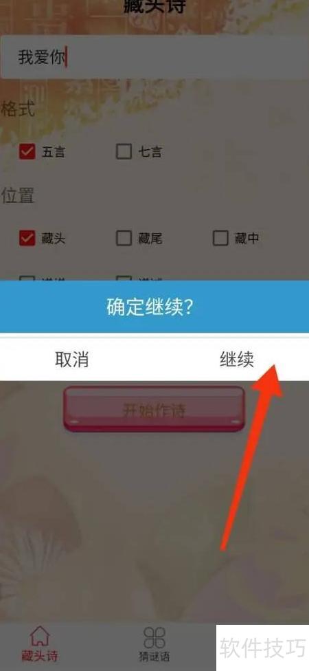 4、 输入我爱你,点击开始,再点继续作诗