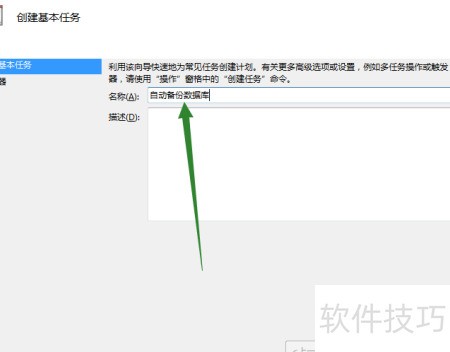 5、 在运行向导中将计划任务命名为自动备份数据库。