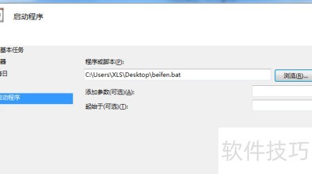 9、 在启动程序窗口中,选择先前创建的批处理文件。