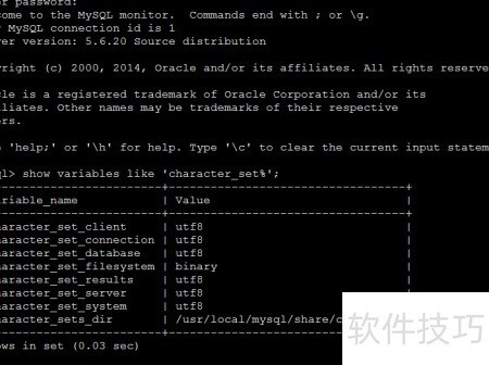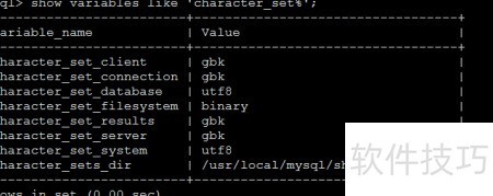 3、 重新运行命令:show variables like character_set%; 以检查字符集设置的更改结果。