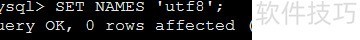 2、 执行SET NAMES utf8命令,将MySQL的字符集设置为UTF-8编码格式。
