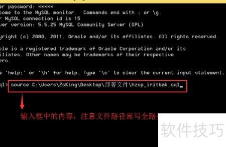 2、 在mysql提示符下输入source加SQL文件路径即可执行。