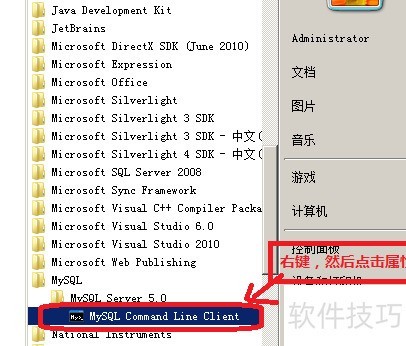 10、 在开始菜单中查找并点击 MySQL 命令行客户端的快捷方式,启动程序。