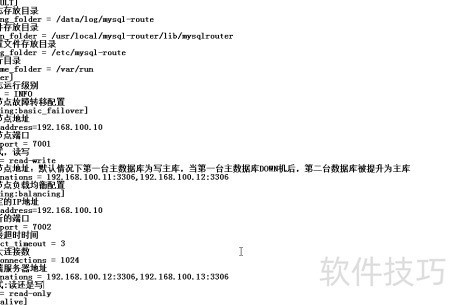 4、 解压MySQL Route后,按图示配置文件目录及代码。