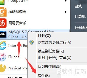 2、 在本地位置找到MYSQL命令行客户端,右键选择属性,进入其属性设置界面。