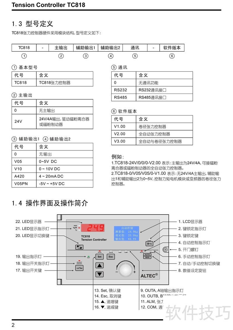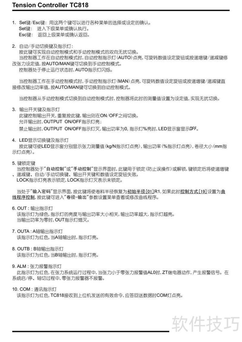 、 本文是TC818型V1.00张力控制器的使用说明,详细讲解操作步骤与常见问题处理方法,帮助用户正确掌握设备使用技巧。