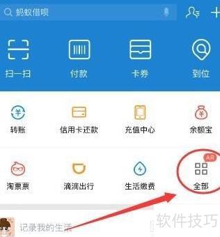 3、 开启后可在支付宝首页找到AR红包,点击全部即可进入。