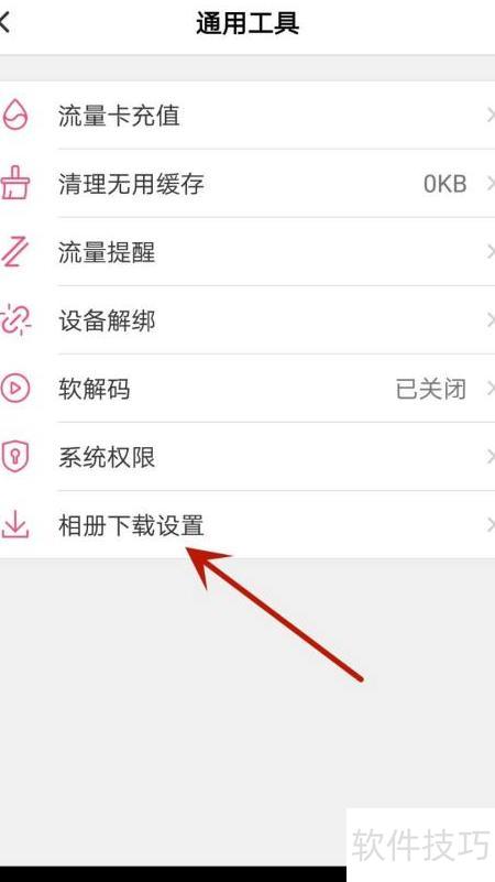 4、 点击箭头所指的相册下载设置选项