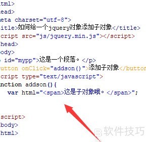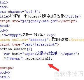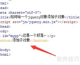1、 创建一个名为test.html的文件,用于演示如何为jQuery对象添加子元素。