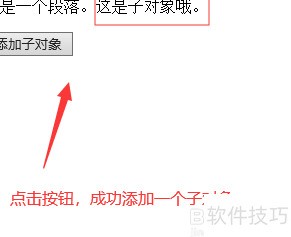 3、 在test.html中,用button标签创建一个名为添加子对象的按钮。
