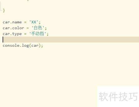 3、 第三步是重新创建一个空对象car,通过点属性方式为其设置属性值,也可采用new Object()方法实现,具体操作所示。