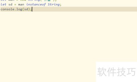 6、 第六步,采用相似方式,通过new String()创建一个名为man的变量,随后利用instanceof操作符检测该变量是否属于String类型,具体操作所示。