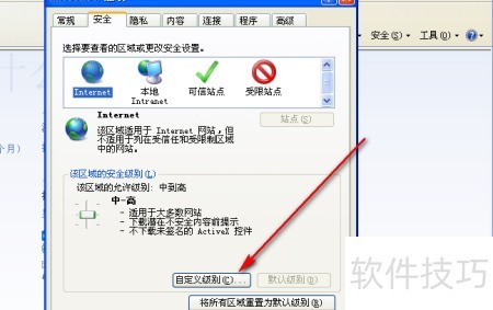 7、 点击自定义级别…按钮,操作所示。