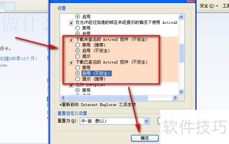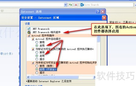 9、 在包含activex的选项中,勾选启用项(无需全部启用)。