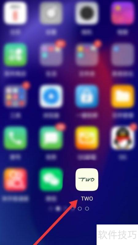 1、 打开手机,找到并点击箭头指示的TWO软件即可使用。