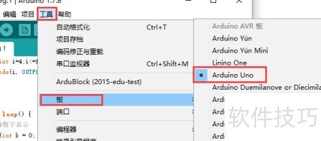 13、 ,用USB数据线将Arduino UNO控制器连接电脑,正确选择板型为Arduino UNO,并设置对应的端口号即可。
