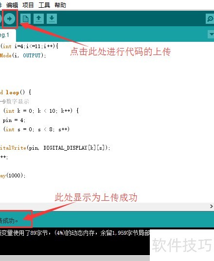 2、 将以下代码复制到Arduino IDE,操作所示。
