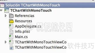 6、 接着进行引用操作即可完成。随后打开TChartWithMonoTouchViewController.cs文件,添加相应的using语句,如示例所示。这样就能顺利访问并使用所有相关的对象、方法以及属性,为后续开发做好准备。