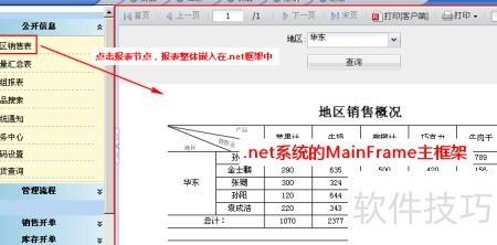 2、 所示,点击左侧报表节点,即可在.NET系统的MainFrame主框架中完整显示报表内容。