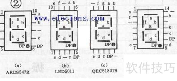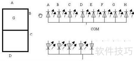 6、 将多个发光二极管的阳极共同连接至电源正极的称为共阳极数码管,而将阴极共同连接至电源负极的则称为共阴极数码管。常见的LED数码管用于显示数字与字符,包括0至9的阿拉伯数字以及A、B、C、D、E、F六个字母,共可呈现16种基本符号,广泛应用于各类数字显示场合。
