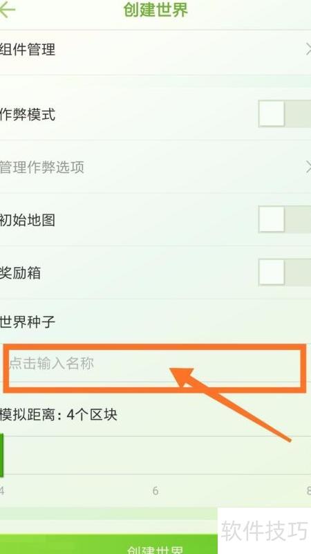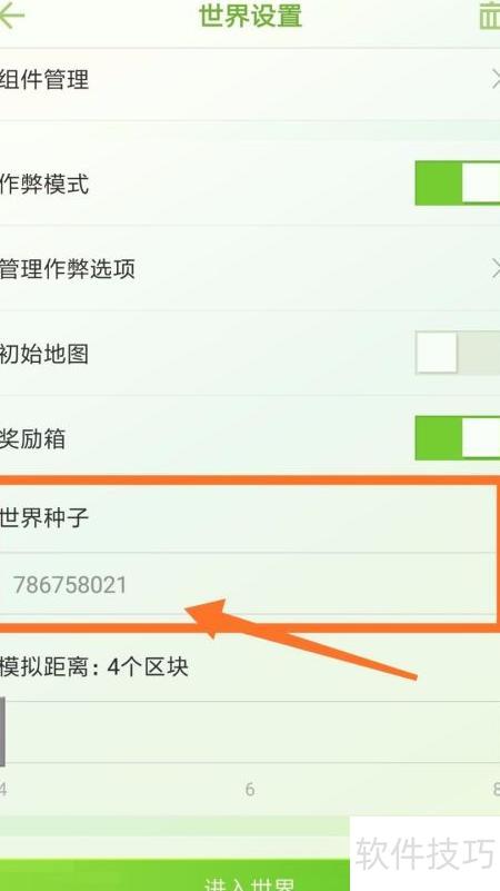 6、 在地图设置页面,完成其他参数配置后,点击世界种子并输入之前记录的地图种子编号即可,具体操作所示。