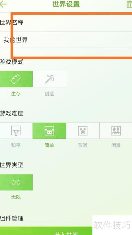 4、 进入设置页面后,可查看地图信息,如游戏模式、难度和世界类型等。继续下滑,即可看到世界种子,具体所示。