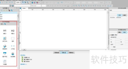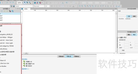 1、 启动Axure,于左下角选取元件库。