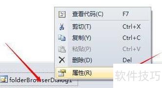 2、 右键点击folderBrowserDialog1,从弹出菜单里选择属性选项即可。