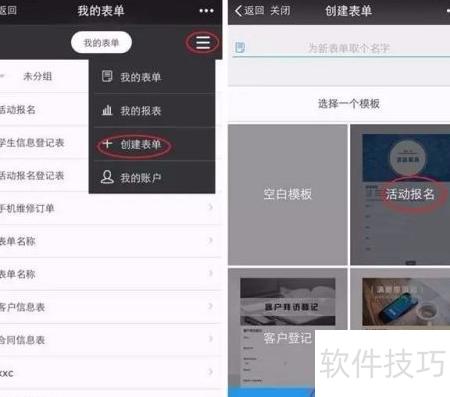 4、 点击右上角的,挑选所需场景模板,以活动报名为例,选择相应选项后进入表单编辑界面。