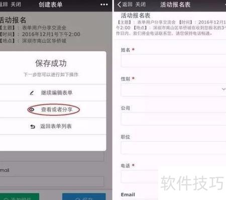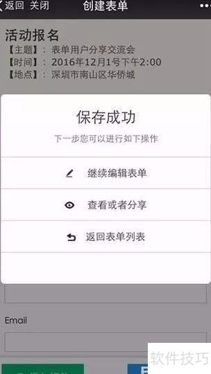 12、 表单保存后,可继续编辑、查看分享或返回列表进行操作。