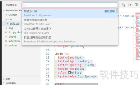 3、 按下F1键或Ctrl+Shift+P可开启命令面板。