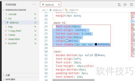 1、 启动Vscode,打开项目中的CSS文件进行编辑。