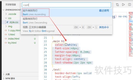 5、 点击搜索建议:按升序排列行——Sort Lines Ascending。