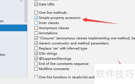 5、 进入代码折叠设置后,选中简单属性访问器选项即可启用该功能。