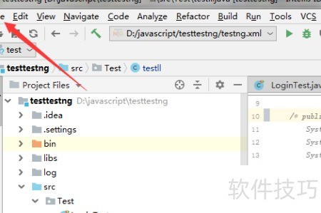 2、 在IntelliJ IDEA界面左上角的file菜单中进行点击操作。
