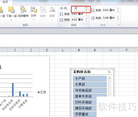 2、 在切片器工具选项的功能区中将列值设为2。