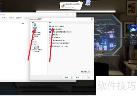 如何配置Everything的快速ASCII搜索?具体操作步骤如下。