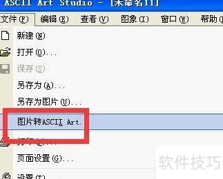 3、 启动ASCII Art Studio,点击文件菜单,选择图片转ASCII Art功能即可开始转换。