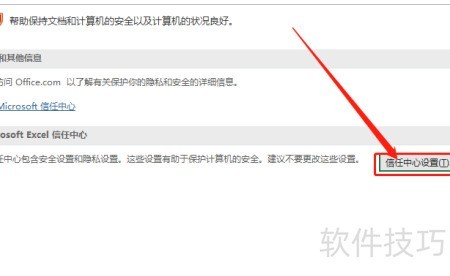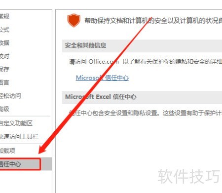 3、 进入Excel选项,选择信任中心设置,操作所示。