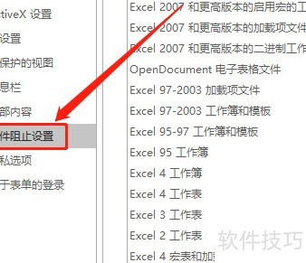 5、 点击文件阻止设置选项,所示。