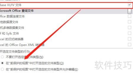 6、 选择dBaseⅢ/Ⅳ文件类型,并勾选在受保护视图中打开所选文件类型即可,所示。