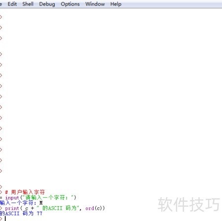 7、 输出字符c的ASCII码值,使用ord函数获取对应数值并显示结果。